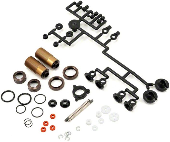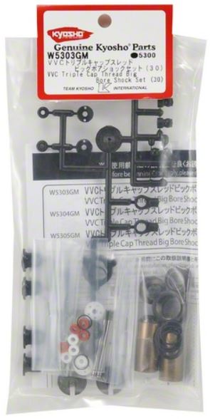 This is the Kyosho 30mm Velvet Coated Triple Cap Threaded Big Bore Front Shock Set. These shocks are used on the front of the RB6, RB5 SP2 WC and Lazer FS2 SP. and the These velvet coated shocks offer increased shock consistency, and improved overall performance. This set includes all the components needed to build two shocks. NOTE: Shock springs not included. Must be used with KYOXGS Big Bore shock springs.