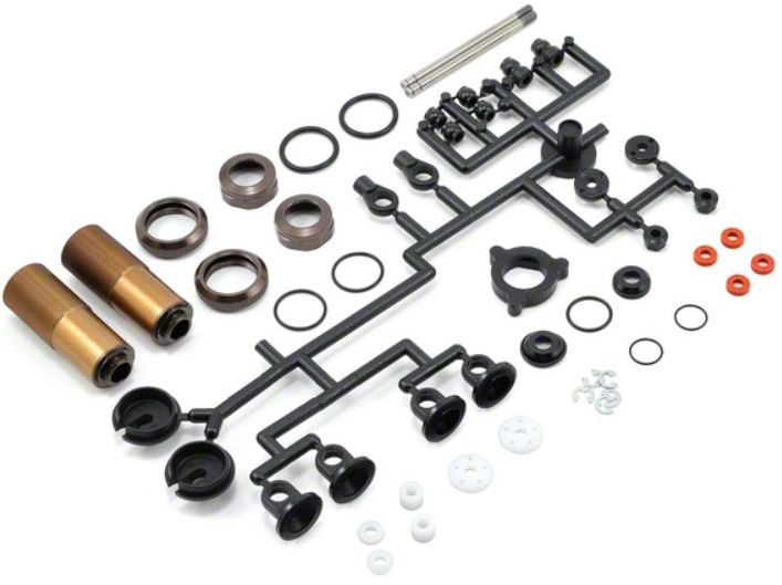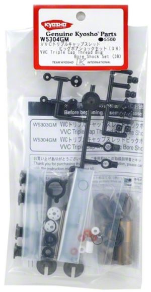 This is the Kyosho 38mm Velvet Coated Triple Cap Threaded Big Bore Shock Set, and is intended for use with the Kyosho RB5 and ZX-5 buggies in the rear position, as well as the RT5, SC and DB in the front location. These velvet coated shocks offer increased shock consistency, and improved overall performance. This set includes all the components needed to build two shocks. NOTE: Shock springs not included. Must be used with KYOXGS Big Bore shock springs.