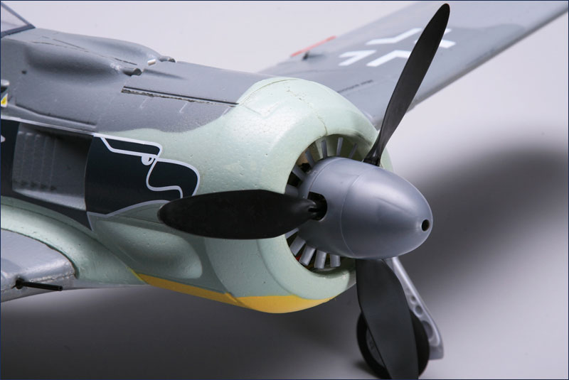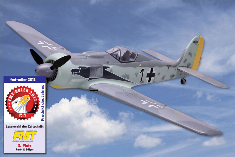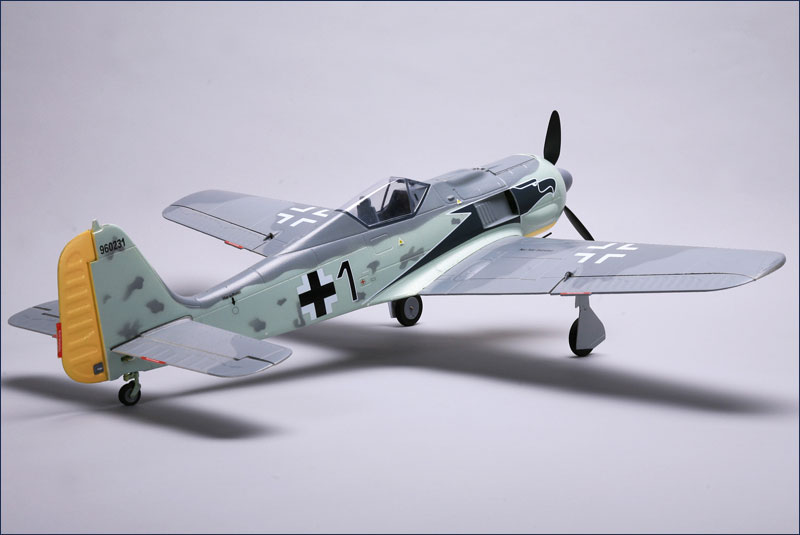 Schon am Boden zieht die Focke Wulf FW-190 neugierige Blicke der Piloten und Zuschauer auf sich. Wird nach dem Start das Fahrwerk eingezogen, ist das Modell vom Original kaum mehr zu unterscheiden. Die Flugeigenschaften sind völlig unkritisch, das Modell kann in einem sehr weiten Geschwindigkeitsbereich geflogen werden. Die ausgefahrenen Landeklappen verleihen der FW-190 im Landeanflug optisch den letzten Schliff und machen sie zum absoluten Eyecatcher auf jedem Modellflugplatz.