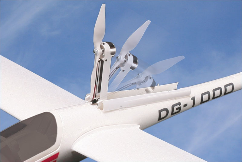 Die DG-1000 ist ein vorbildgetreuer Nachbau des beliebten Hochleistungsseglers der Firma DG-Flugzeugbau in Bruchsal. Das Modell ist mit einem innovativen Klapptriebwerk ausgestattet, dass sich automatisch ein- und ausfährt. Im eingefahrenen Zustand verschwindet das Triebwerk vollständig im Rumpf. Zwei passgenaue Klappen auf der Rumpfoberseite verschließen den Triebwerksschacht.